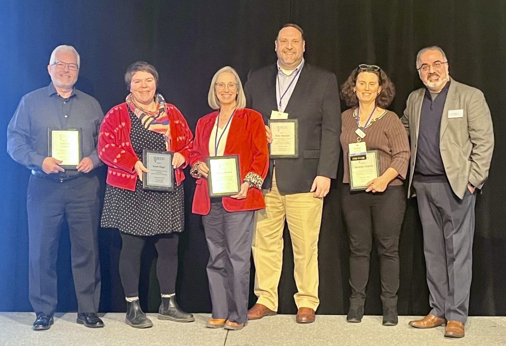AMTE made Stephan (below, second from right) part of their 2025 awards class in acknowledgement her three-year tenure on the Board of Directors and her role as Vice President of Membership, a distinguished position shaping the direction of mathematics teacher education across the country.